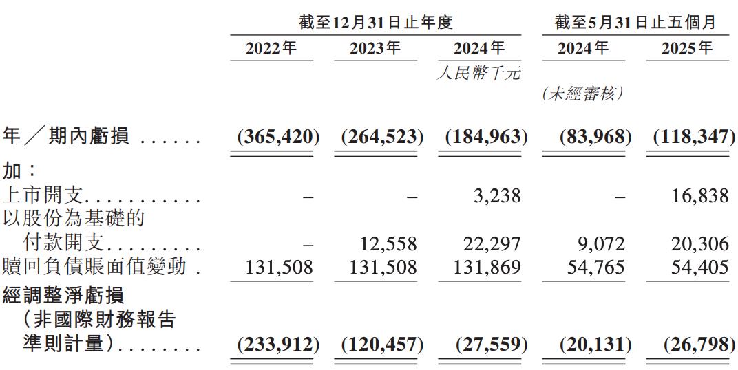 按非国际财务报告准则计量,云迹科技2022年、2023年、2024年度和2025年前五个月的经调整净利润分别约为-2.33亿元、-1.20亿元、-2755.9万元和-2679.8万元。不难发现,云迹科技持续处于亏损状态,但亏损金额于2024年大幅收窄。