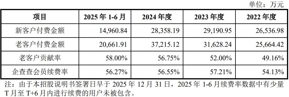 但就付费用户忠诚度的角度来看,企查查老会员的续费率亦不算高。2022年、2023年、2024年度和2025年上半年,企查查会员的续费率分别约为54.13%、57.12%、56.55%和56.27%,于2024年开始出现下降,并在2025年上半年维持了这一趋势。