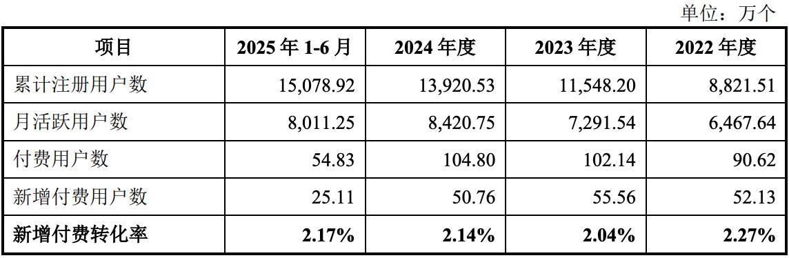 其中,会员类产品为企查查的核心产品和主要收入来源。与之对应的是,截至2025年6月末,企查查的累计注册用户约为1.51亿。相比之下,其截至2022年、2023年和2024年末的累计注册用户分别约为8821.51万、1.15亿和1.39亿。