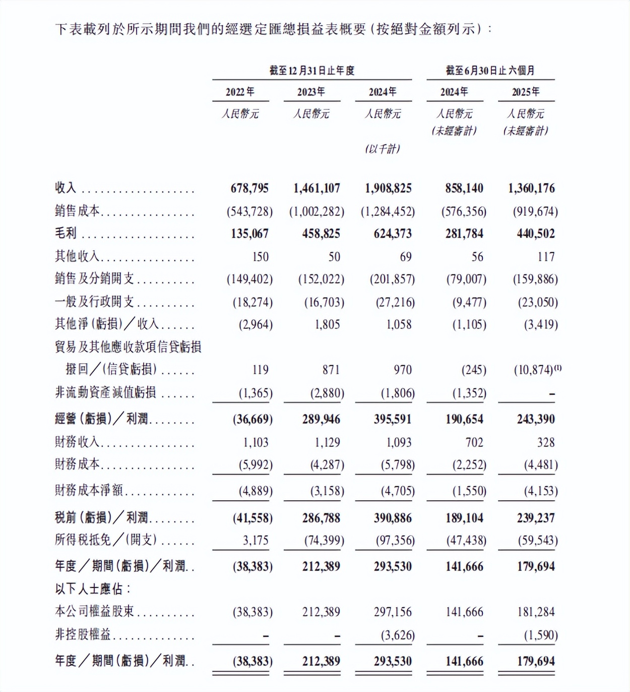 从其招股书披露的营收表现看,TOP TOY在2022年至2024年间保持高速扩张,收入由6.79亿元跃升至19.09亿元。2023年为关键转折点,其首次实现盈利,净利润达2.12亿元;2024年进一步增至2.94亿元。进入2025年上半年,其实现营收13.60亿元,同期净利润录得1.80亿元。
