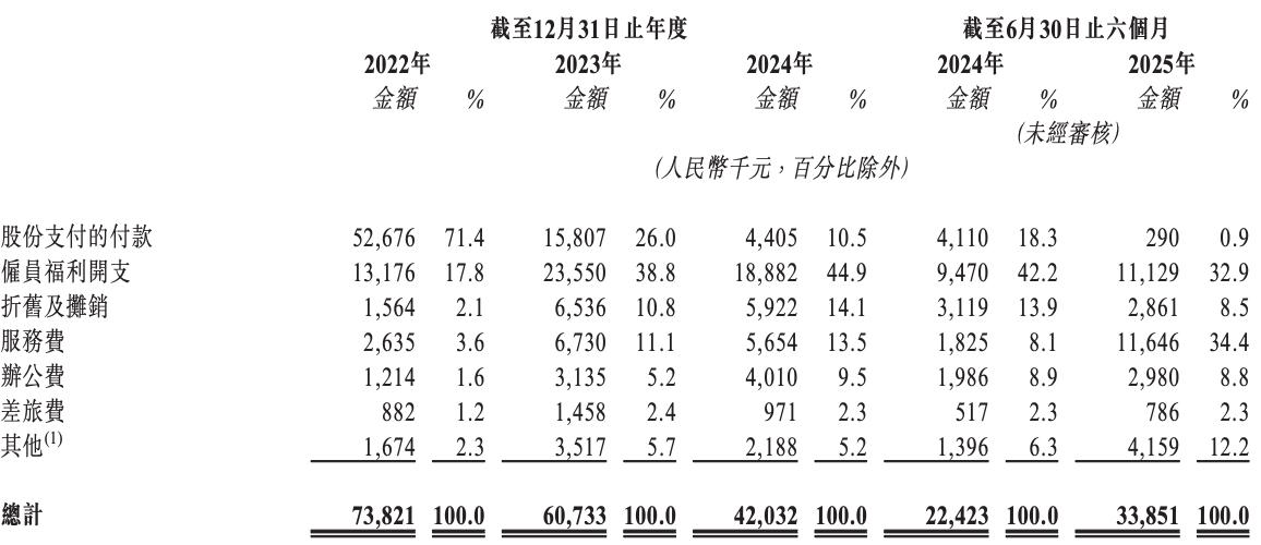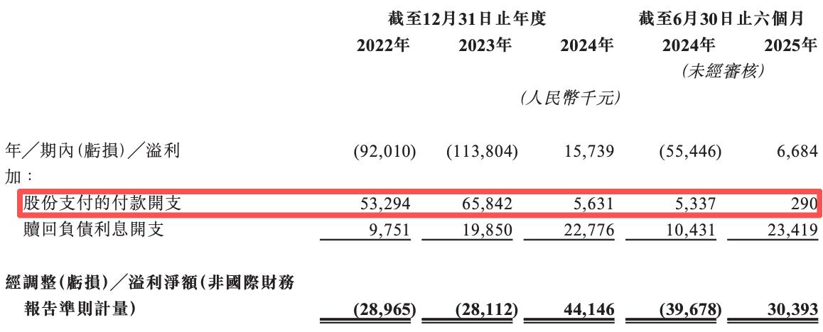尽管2022年、2023年处于亏损状态,但微亿智造对个别高管十分慷慨。招股书(P11页)显示,微亿智造2022年、2023年分别产生股份支付的付款开支5329.4万元、6584.2万元,2024年度约为563.1万元,2025年上半年则为29.0万元。