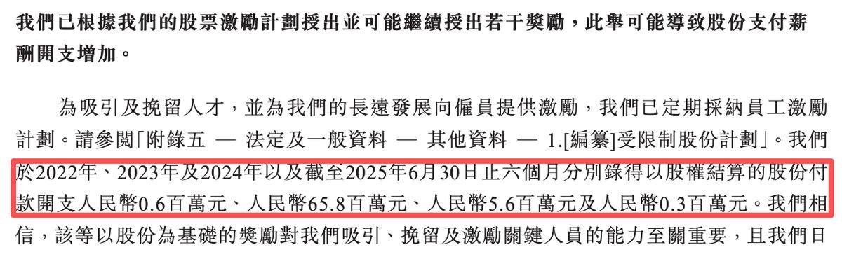 而根据招股书(63页),微亿智造称,“为吸引及挽留人才,并为我们的长远发展向僱员提供激励,我们已定期采纳员工激励计划”。其中,2022年、2023年、2024年度和2025年上半年分别录得以股权结算的股份开支约60万元、6580万元、560万元和30万元。