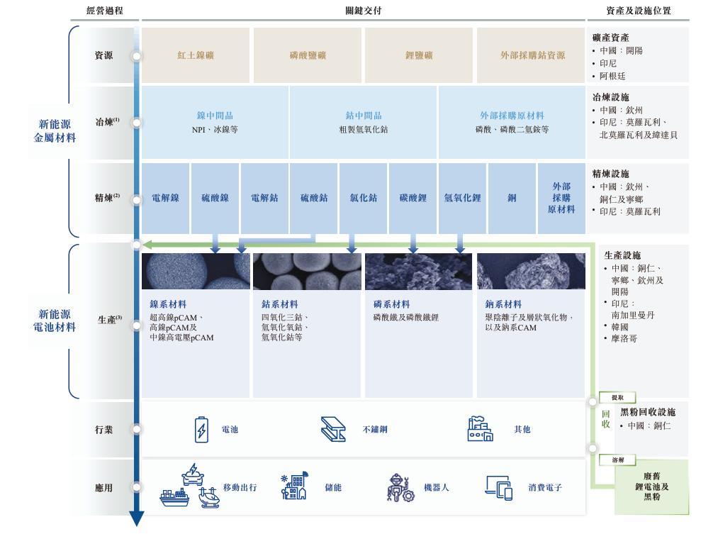 据招股书介绍,中伟股份主要从事以正极活性材料前驱体(pCAM)为核心的新能源电池材料的研发、生产及销售,以及新能源金属产品,建立了一套从上游新能源金属开采、冶炼和精炼至新能源材料生产,再到回收的一体化运营模式。