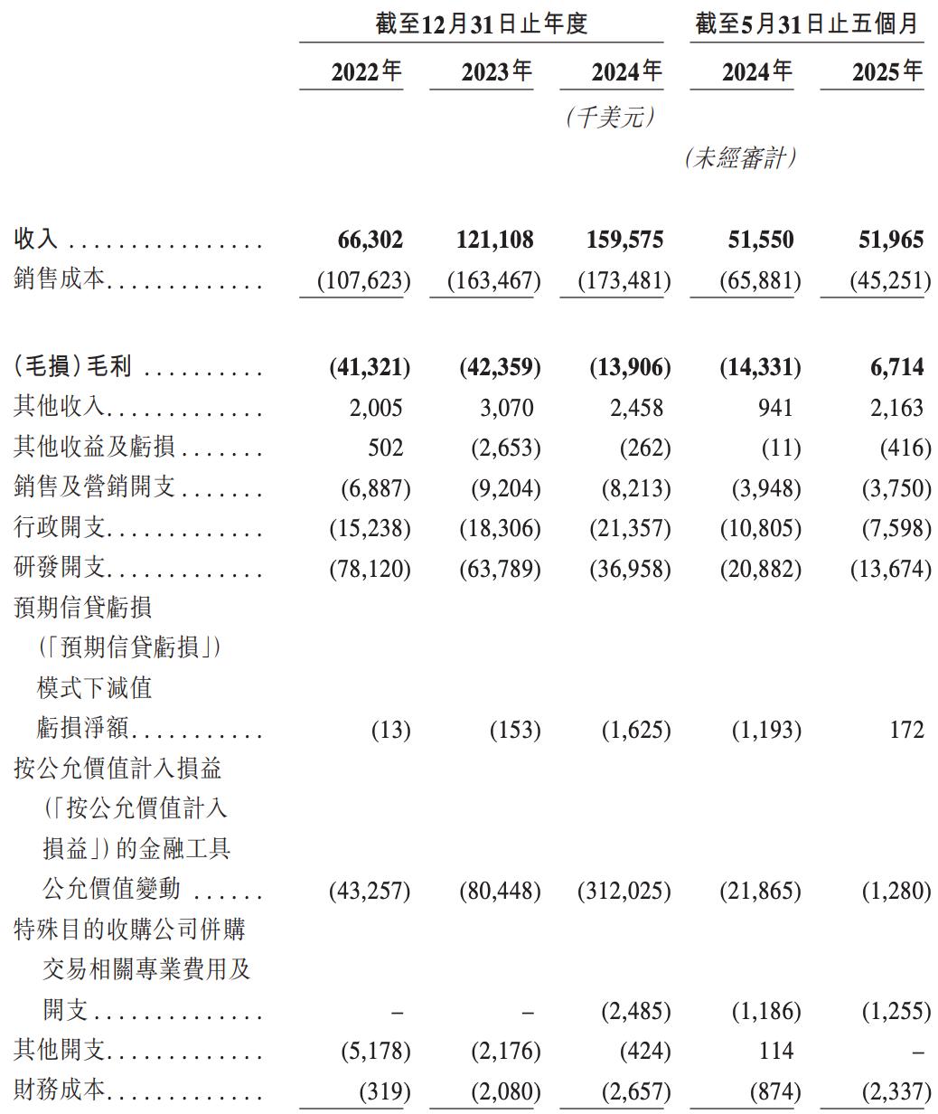 2022年、2023年、2024年度和2025年前5个月,图达通的营收分别为6630.2万美元、1.21亿美元、1.60亿美元和5196.5万美元,净亏损分别为1.88亿美元、2.19亿美元、3.98亿美元和2149.4万美元。