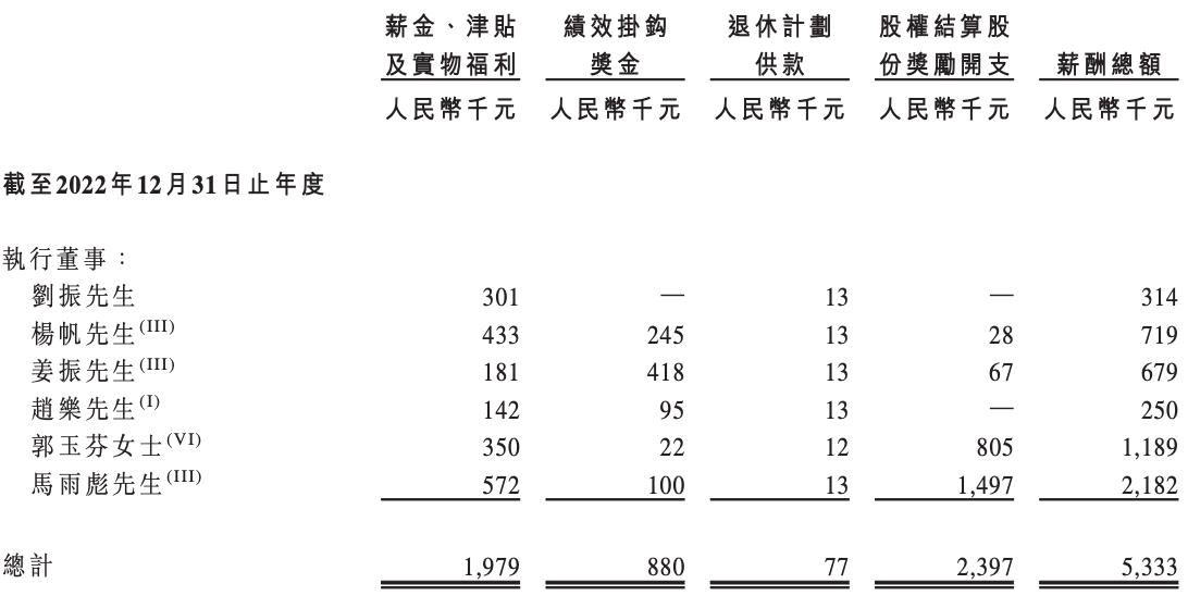 2022年,马雨彪从伯希和取得的薪酬合计218.2万元,2023年、2024年分别约为241.5万元、272.1万元,2025年上半年则高达888.1万元,主要是股权结算股份奖励开支。报告期内,该指标分别约为149.7万元、149.7万元、150.0万元和799.3万元。