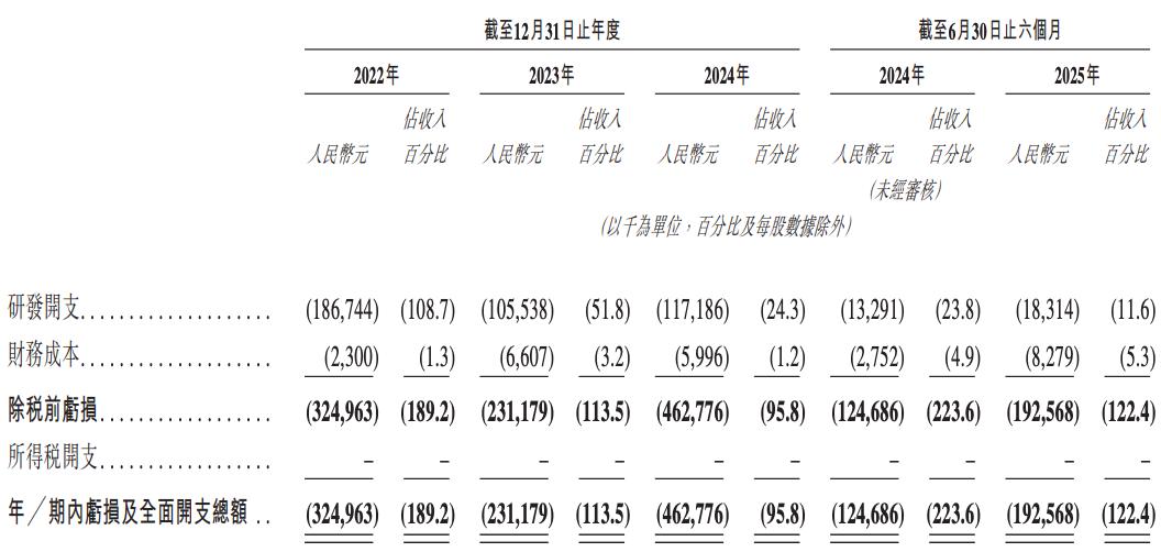 业绩方面,2022年、2023年、2024年度和2025年上半年,天瞳威视的营收分别约为人民币1.72亿元、2.04亿元、4.83亿元和1.57亿元,净亏损分别约为3.25亿元、2.31亿元、4.63亿元和1.93亿元。