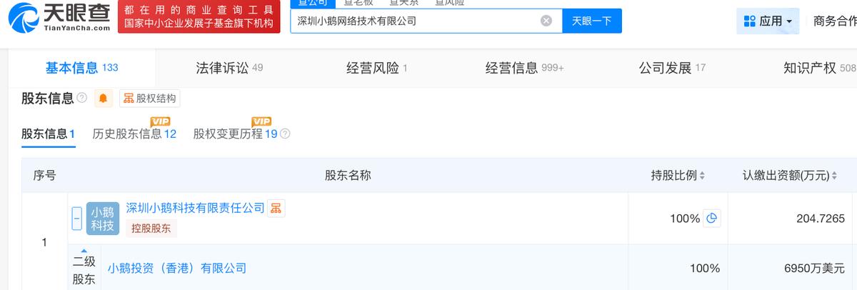 天眼查App信息显示,深圳小鹅网络成立于2015年2月,旗下品牌为“小鹅通”。目前,该公司的注册资本为204.7265万元,法定代表人为鲍春健,由深圳小鹅科技有限责任公司全资控制。