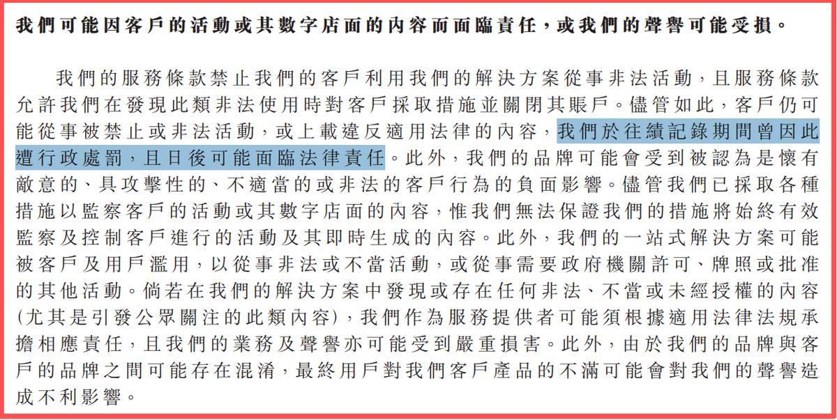 尽管如此,客户仍可能从事被禁止或非法活动,或上载违反适用法律的内容。小鹅通在招股书中坦言,该公司于往绩记录期间曾因此遭行政处罚,且日后可能面临法律责任。不过,小鹅通并未披露罚单的内容以及整改措施。