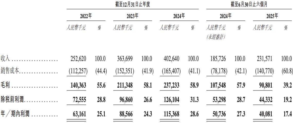 业绩方面,2022年、2023年、2024年度和2025年上半年,诺比侃的营收分别约为2.53亿元、3.64亿元、4.03亿元和2.32元,净利润分别约为6316.1万元、8856.6万元、1.15亿元和4008.1万元。
