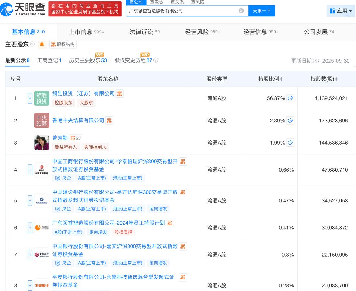 天眼查App信息显示,领益智造成立于1975年7月,前身为江门市粉末冶金厂。目前,该公司的注册资本为70.08亿元,法定代表人为曾芳勤,主要股东包括领胜投资、曾芳勤等。