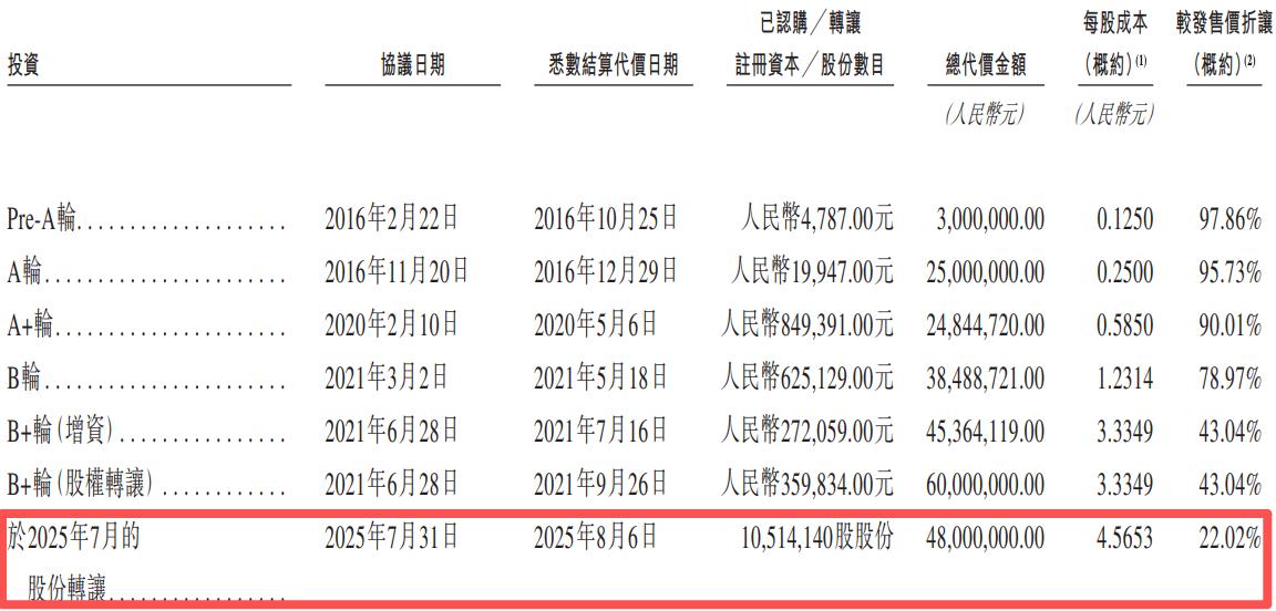 遇见小面招股书显示,奇昕于2025年7月和魏传发、杜鸣、顾东生签订股权转让协议,向魏传发、杜鸣、顾东生转让遇见小面的股权,分别作价2800万元、1500万元和500万元,每股成本为4.5653元。