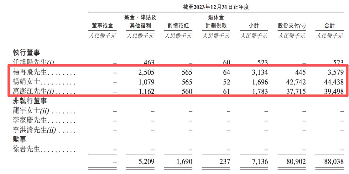 仅就2023年而言,海致科技对杨娟、万澎江的股份支付金额分别约4274.2万元、3771.5万元,对杨再飞的股份支付约为44.5万元,合计高达8090万元。其中,杨娟、万澎江均为海致科技执行董事兼副总经理,杨再飞为该公司执行董事兼首席执行官(CEO)。