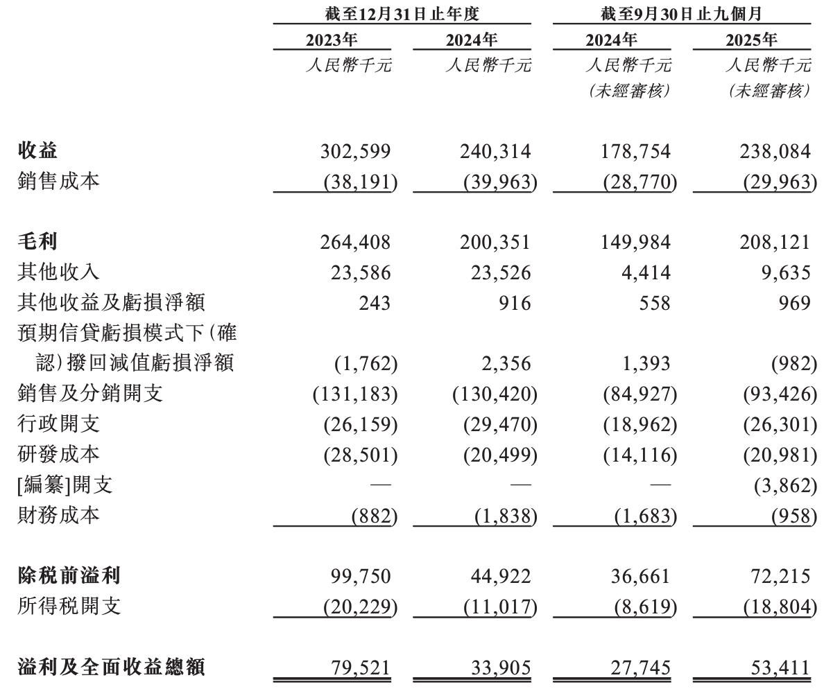 业绩方面,康诺生物2023年、2024年度和2025年前九个月(前三季度)的营业收入分别约为3.02亿元、2.40亿元和2.38亿元,净利润分别为7952.1万元、3390.5万元和5341.1万元。