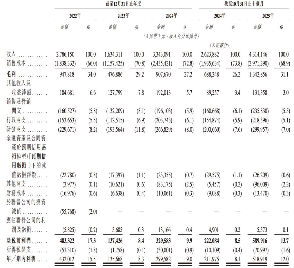 业绩方面,大族数控2022年、2023年、2024年和2025年前十个月的营收分别约为27.86亿元、16.34亿元、33.43亿元和43.14亿元,净利润分别约为4.32亿元、1.36亿元、3.00亿元和5.19亿元。