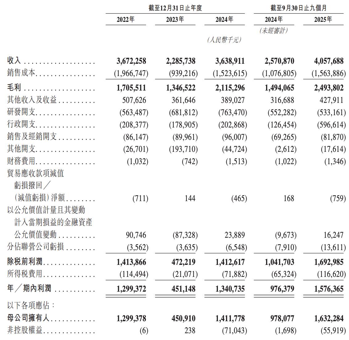 业绩方面,2022年、2023年、2024年度和2025年前九个月(前三季度),澜起科技的营收分别约为36.72亿元、22.86亿元、36.39亿元和40.58亿元,净利润分别约为12.99亿元、4.51亿元、13.41亿元和15.76亿元。