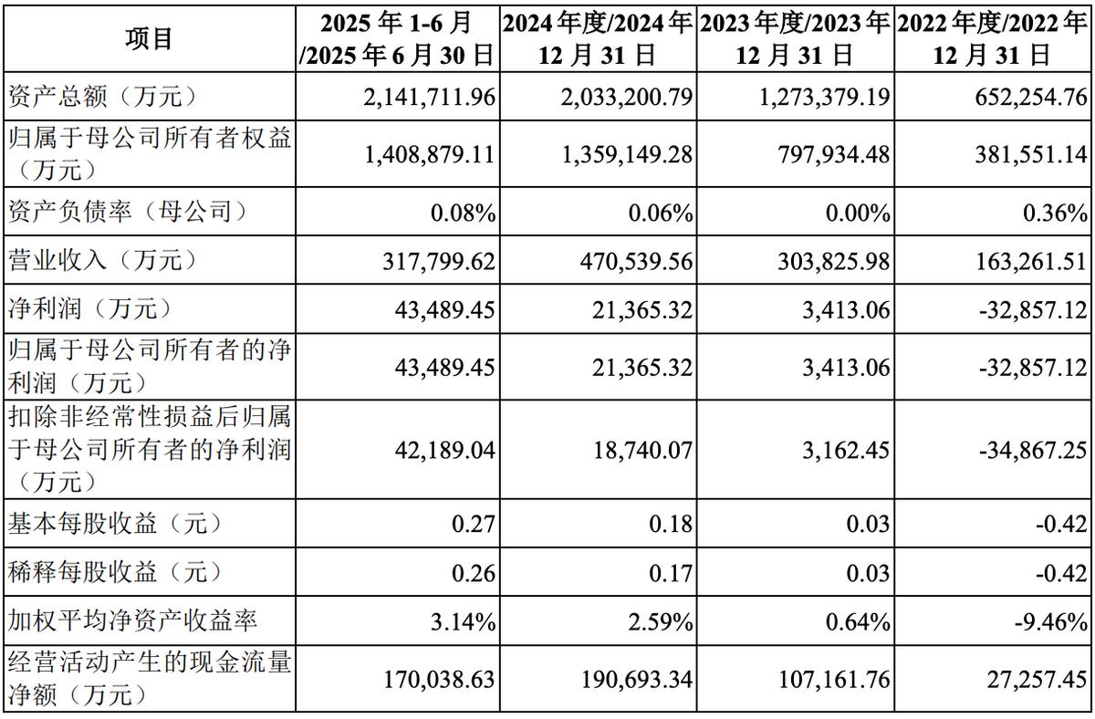 过去数年,盛合晶微的业绩保持快速增长,并实现了盈利。具体而言,2022年、2023年、2024年度和2025年上半年,盛合晶微的营收分别约为16.33亿元、30.38亿元、47.05亿元和31.78亿元。