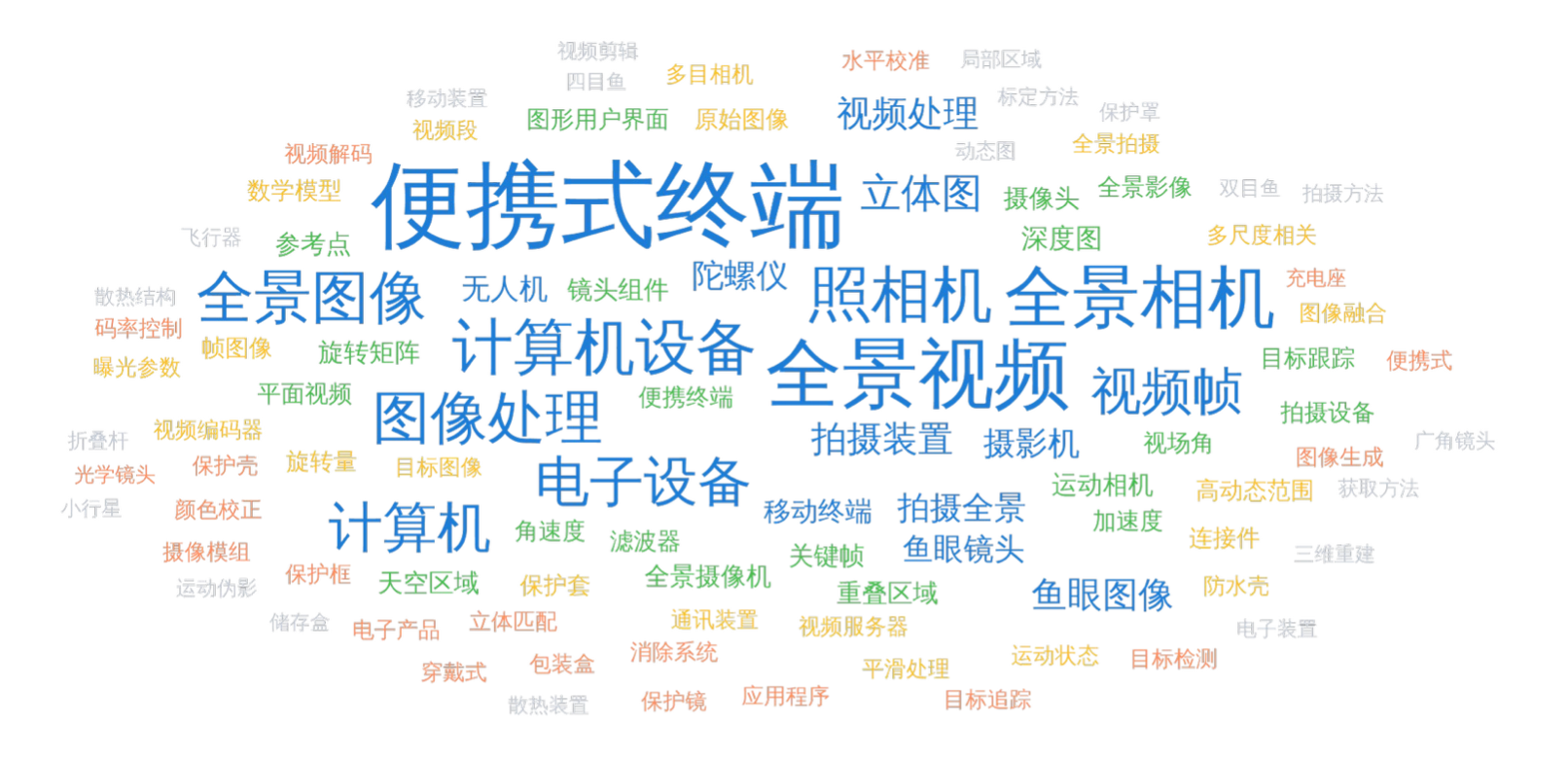 通过智慧芽对相关专利分析可知,影石创新的创新词云主要包括“便携式终端”“全景视频”“全景相机”“全景图像”“计算机设备”“图像处理”等,研发成果显著,且与该公司主营业务的关联度较高。