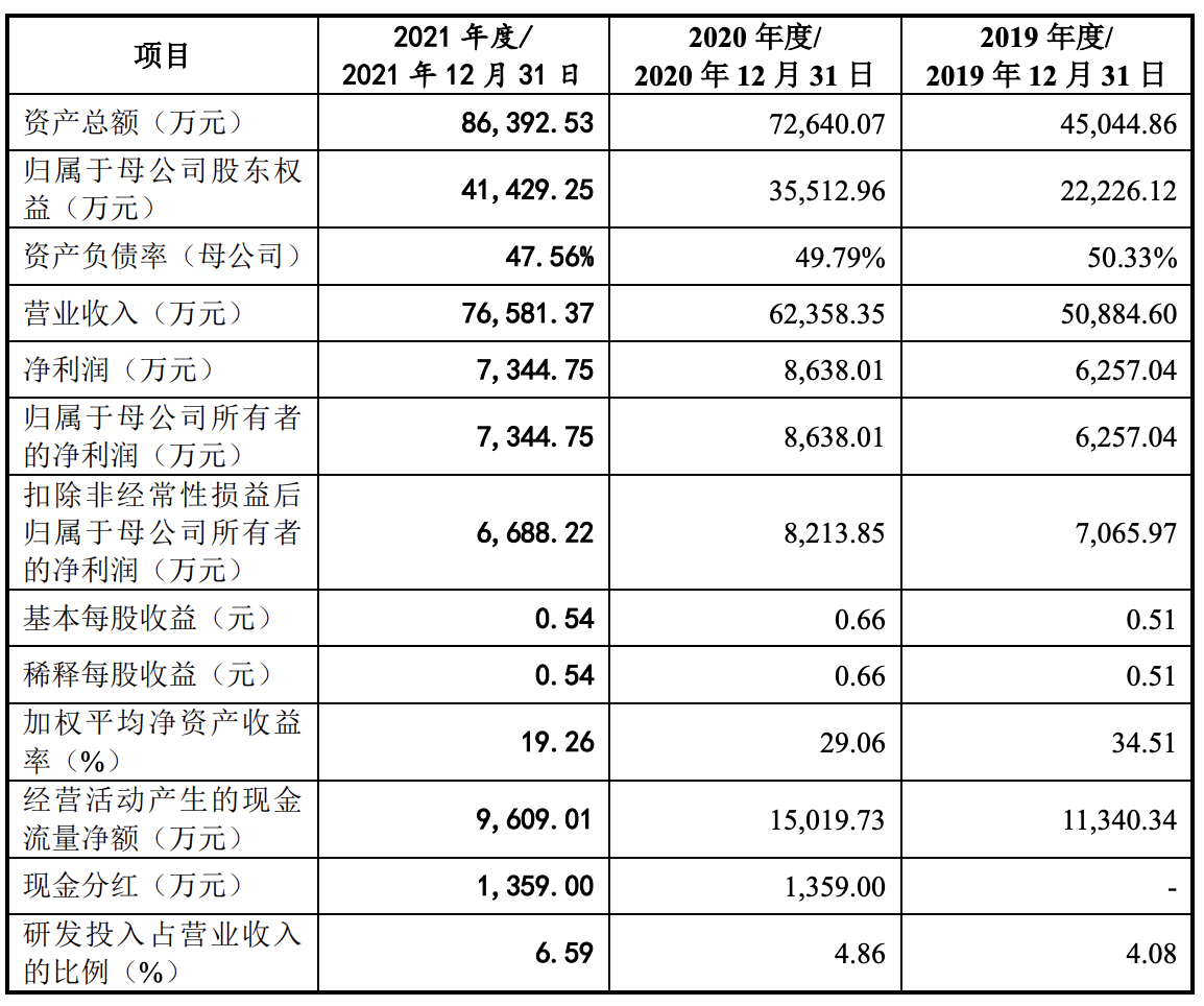 2019年、2020年和2021年,豪江智能的营业收入分别为5.09亿元、6.24亿元和7.66亿元,分别实现净利润6257.04万元、8638.01万元及7344.75万元,实现扣除非经常性损益后的净利润7065.97万元、8213.85万元、6688.22万元。