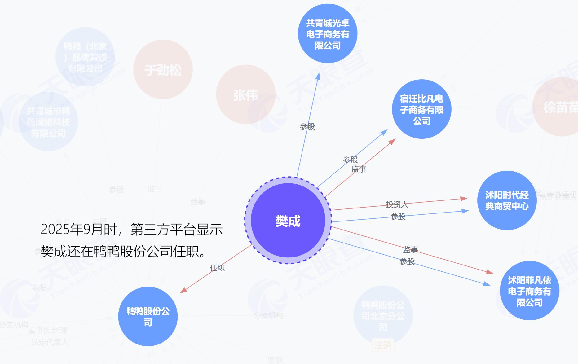 不过,有眼尖的网友发现,虽然公示信息显示该公司的实控人叫樊成,但是作为一家纳税能达到千万级别公司的实控人,却曾在一家叫鸭鸭股份公司“打工”,直到本月初才从鸭鸭股份离职。而这家鸭鸭股份公司,正是80后富豪樊继波的产业。