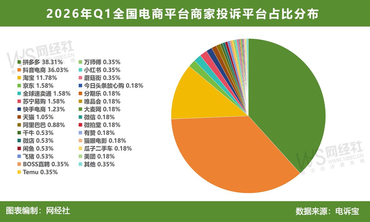 而在2026年第一季度,拼多多投诉量占全国电商平台投诉总量的38.31%,位列行业第一。这意味着,该平台在售后处理、违规处罚等环节行使自由裁量权时,很有可能将本应由平台承担的治理成本转嫁给了商家,最终造成责任错配。