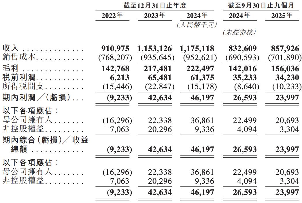业绩方面,2022年、2023年、2024年度和2025前九个月(前三季度),同仁堂医养的营收分别约为9.11亿元、11.53亿元、11.75亿元和8.58亿元。其中,2023年的营收增长率为26.6%,2024年度的增幅则仅为1.9%。