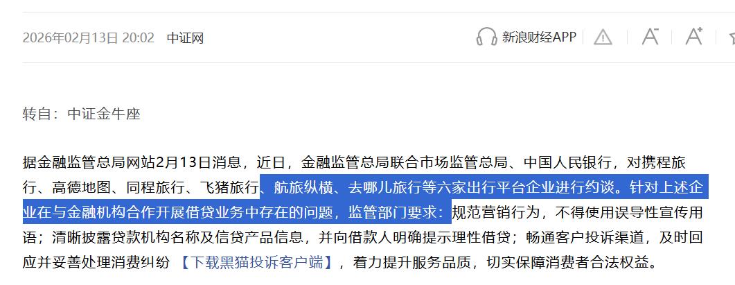 资料显示,航旅纵横在2025年下半年才正式发力“借钱”业务,2026年2月刚因借贷营销问题被监管部门约谈。